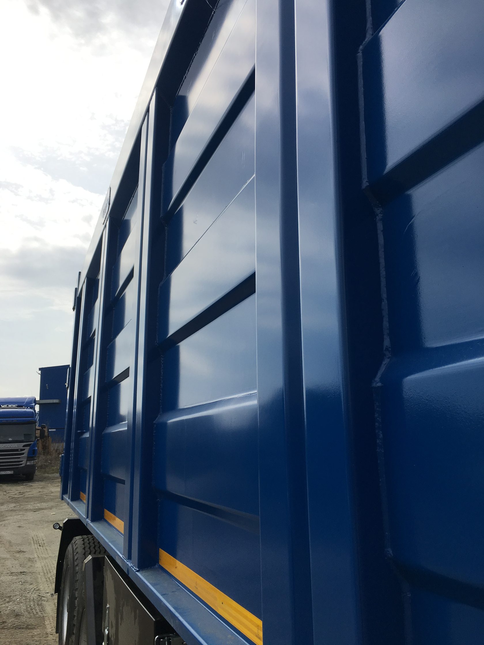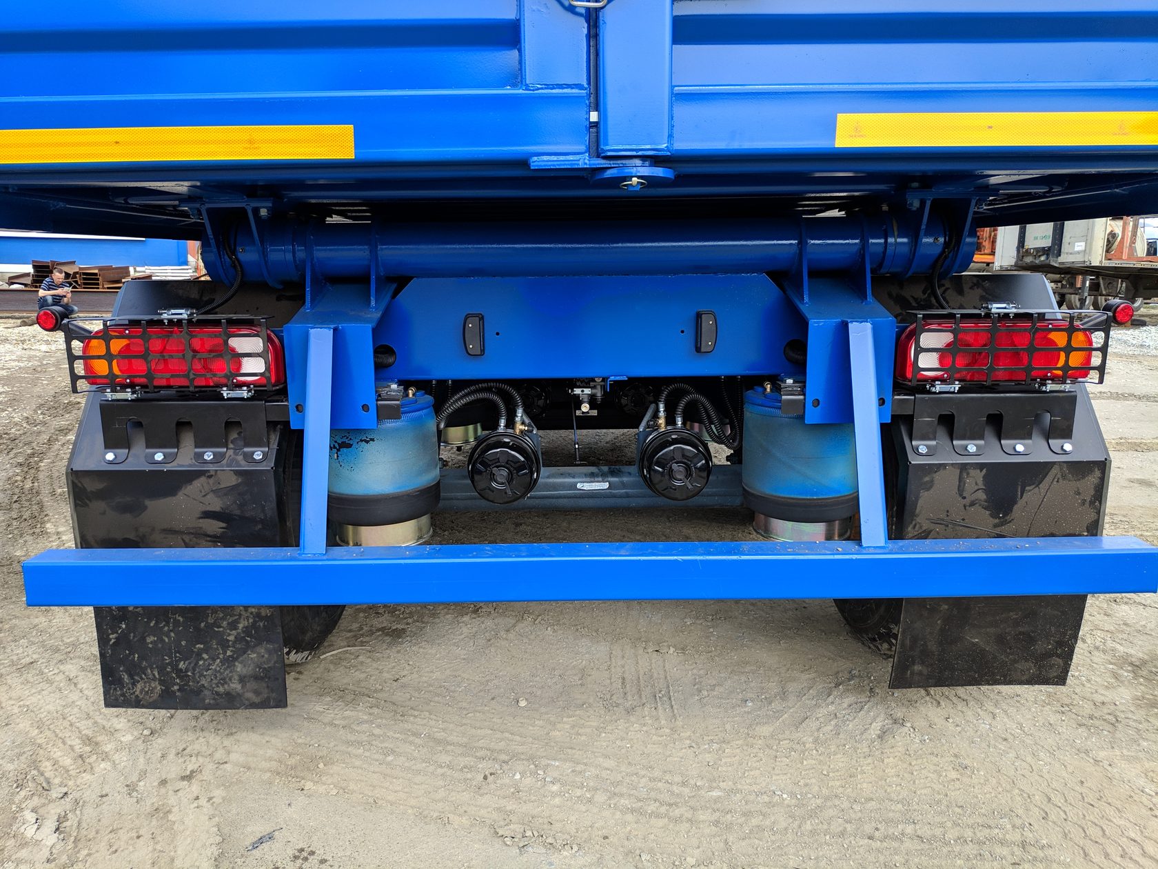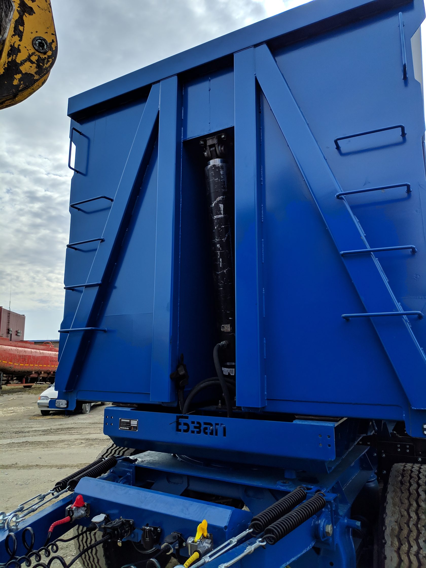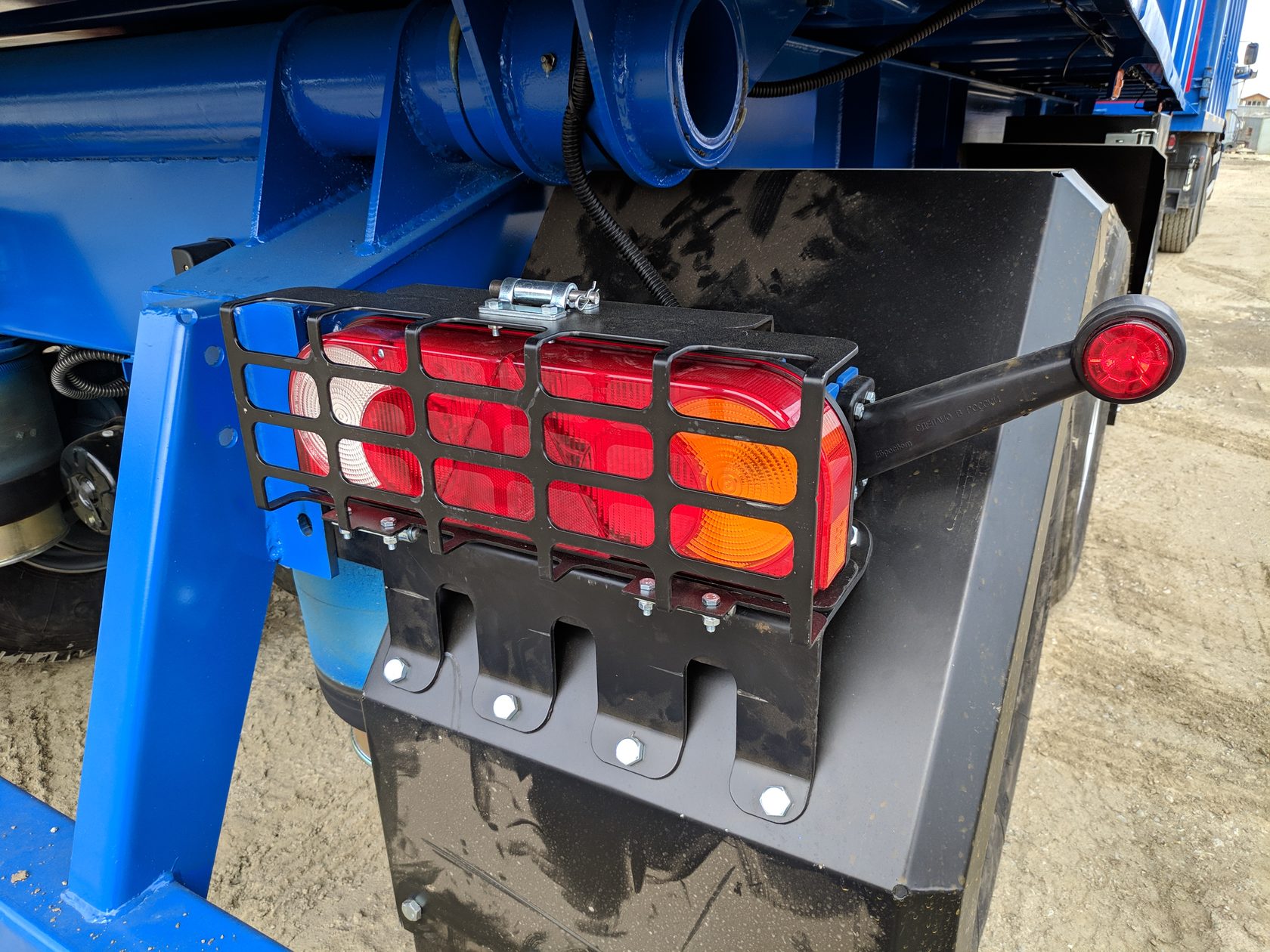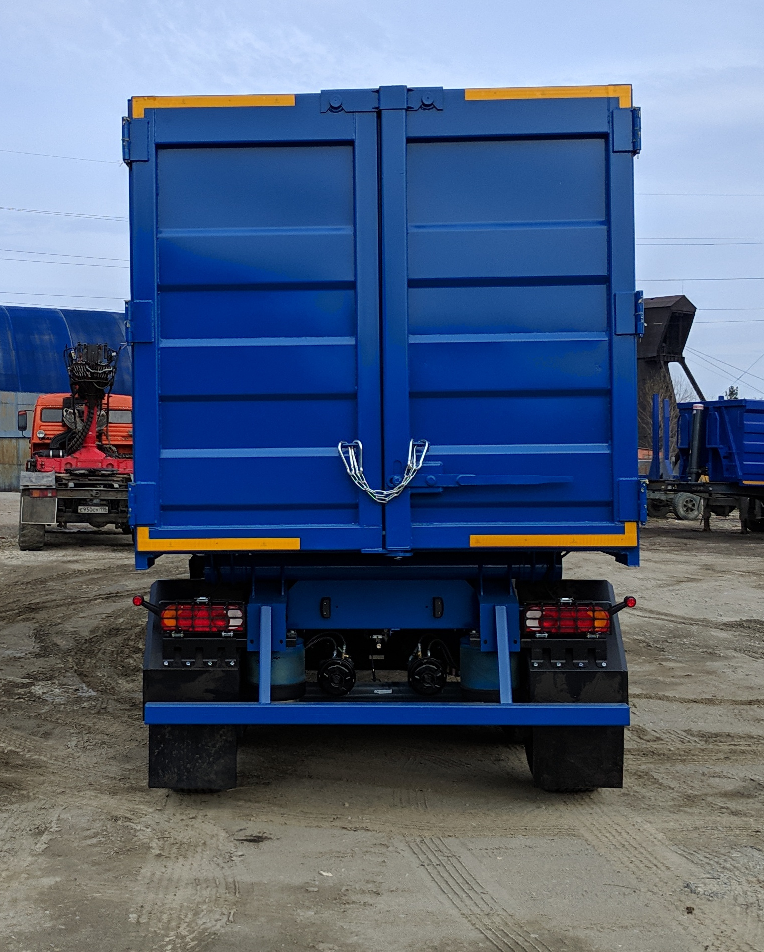 | Задние ворота - Имеют идентичную бортам структуру - Замок двойной: верхняя траверса + нижний штифт D 30мм. с тройной защитой против самопроизвольного открытия (Замок/штифт/цепь) - Обслуживаемые навесы створок ворот с 2мя пресмасленками на каждом |