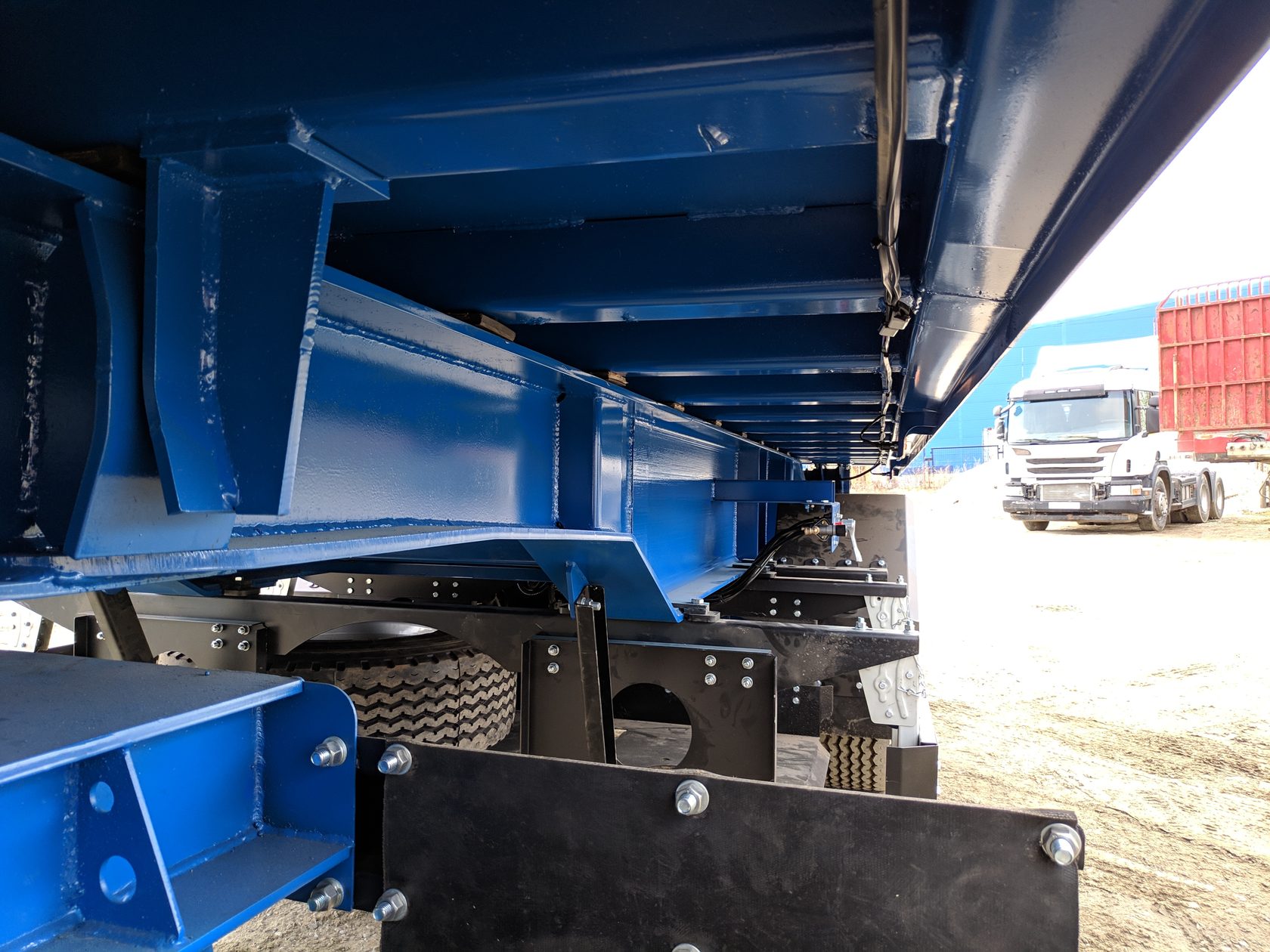 | Рама - Низколигированой стали 09Г2С - Высота двутавровой балки в основном сечение 450 мм. - Балка Горячего Проката - Усилители в зоне опорноповоротного круга (Сам Опорноповоротный круг 11т. SAF Германия) - Усилители в зоне установки подвески - Усилители в зоне вала опрокидывания кузова |