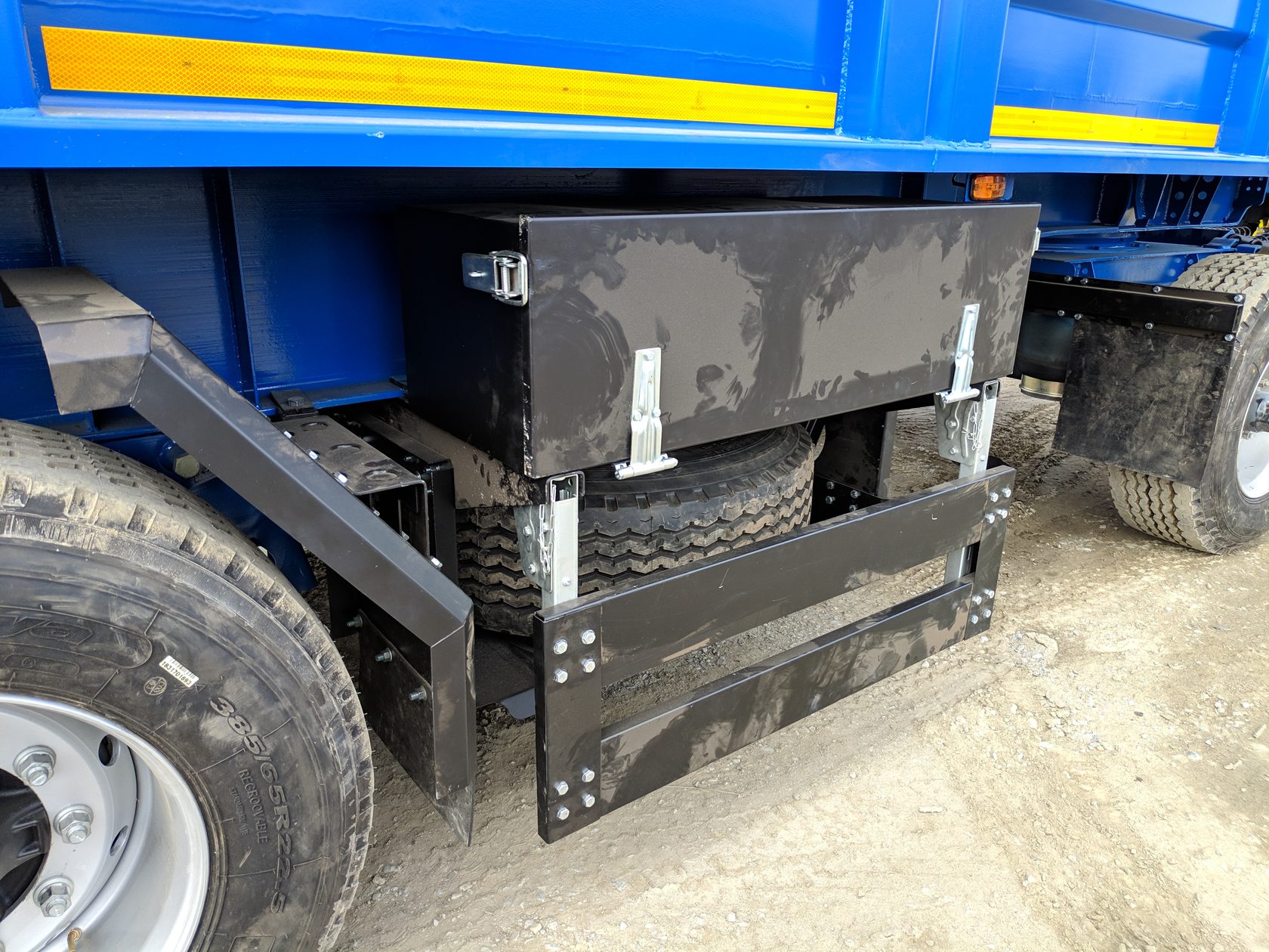 | Инструментальный ящик (доп. комплектация) Выполнен из стали с антикоррозионным покрытием, толщиной 1.5-2 миллиметра, имеет надежный металлический замок, с возможностью закрывания на ключ. Система крепления бокса, выполнена на 4-х болтовых прижимах к нижней плоскости рамы транспортного средства. Место установки согласовывается с заказчиком индивидуально или может быть легко изменено в процессе эксплуатации. Внешняя дверка ящика имеет скрытые петли и обеспечивает герметичность, благодаря автомобильному уплотнителю, расположенному по периметру, который препятствует попаданию влаги и грязи во внутреннее пространство бокса. Возможно изменение габаритных размеров, и организации внутреннего пространства по заявке Заказчика |